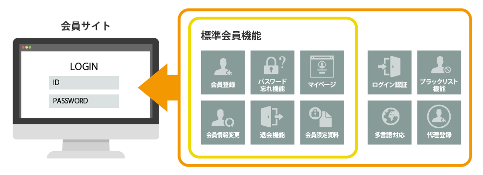会員サイトとして必要な機能は、追加の開発をする必要がなく、すぐに利用可能なパッケージとなっています。