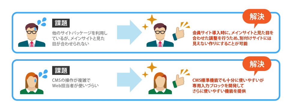 自由にカスタマイズできる拡張性様々な課題に制作会社視点の最適なサポート