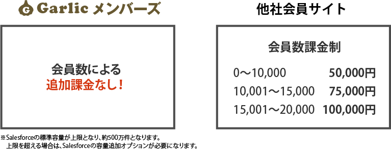 Garlicメンバーズ会員サイト構築パッケージでは、基本会員数による従量制はありません。