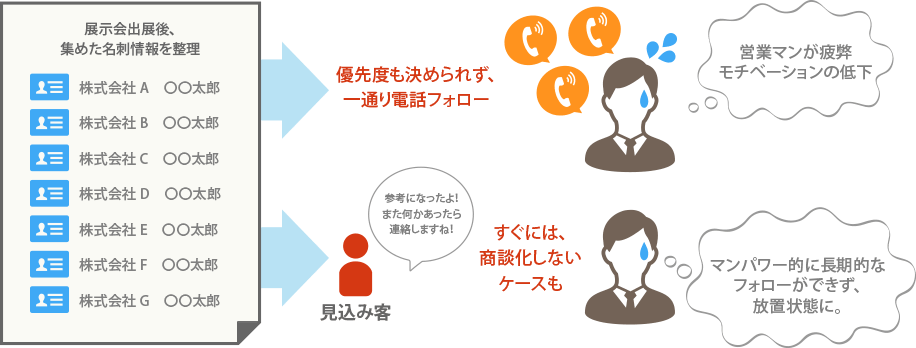 効率的に商談化へつなげ、展示会で集めた名刺情報を無駄にしません。